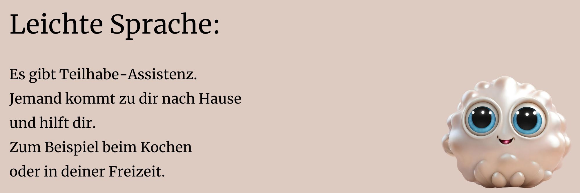 Assistenzleistungen können von konkreter Hilfestellung bei der unmittelbaren Alltagsbewältigung bis hin zur selbstständigen Lebensgestaltung und Lebensplanung reichen. Unser Angebot richtet sich an Menschen mit Beeinträchtigung, die
