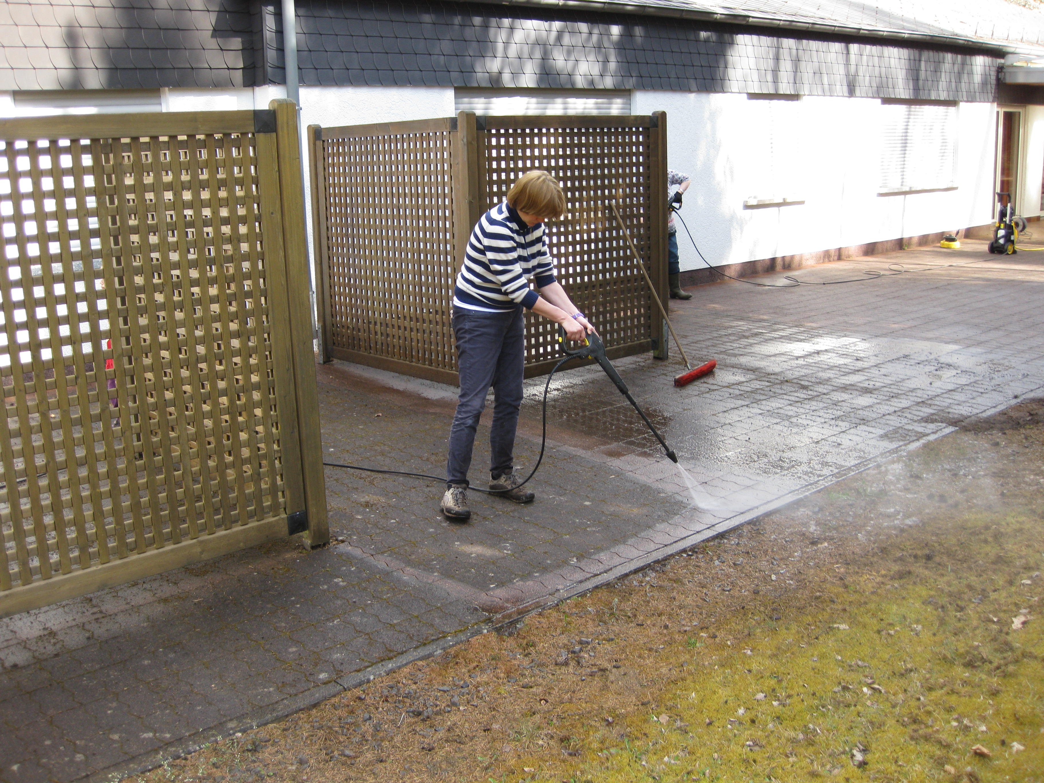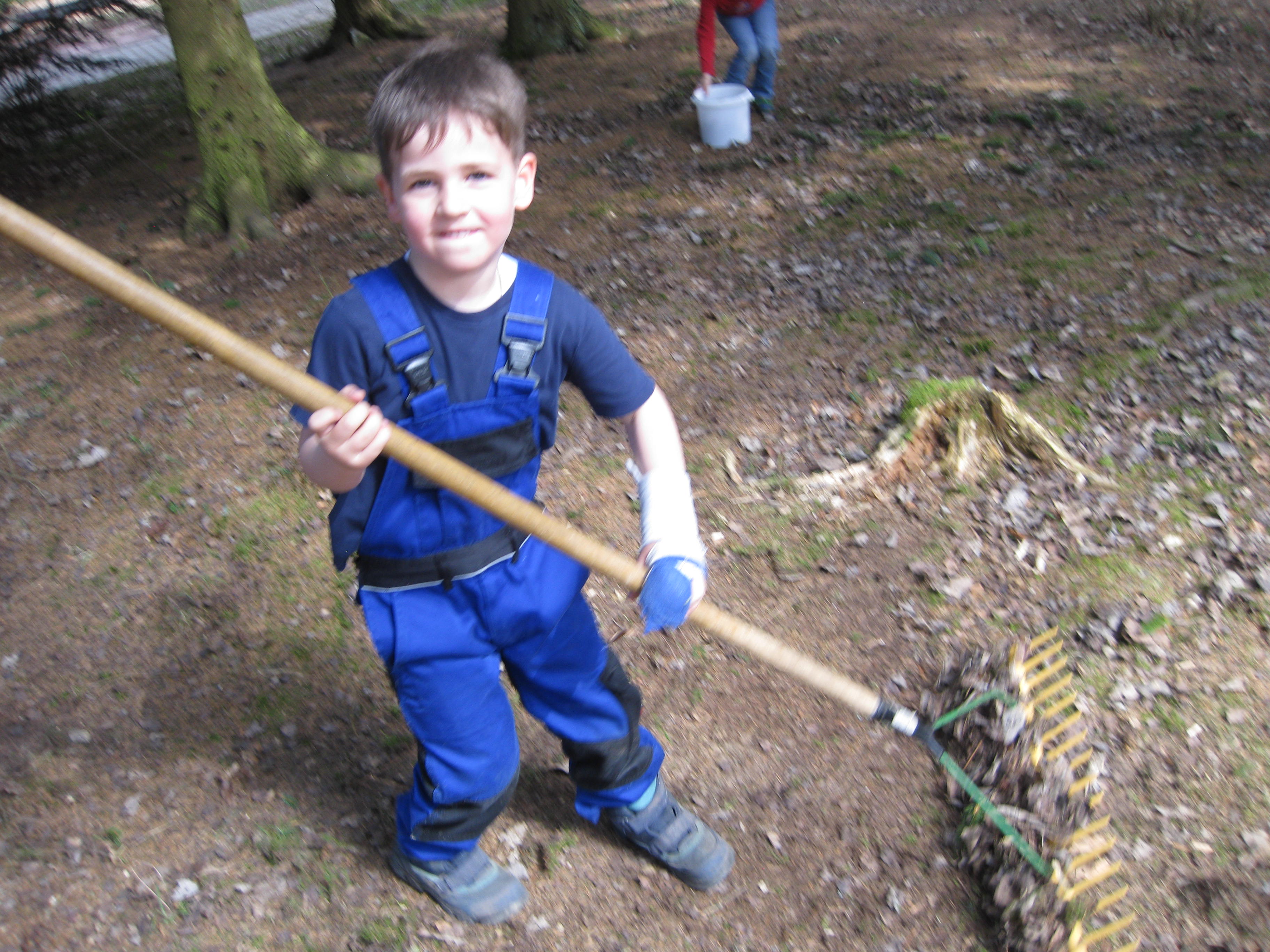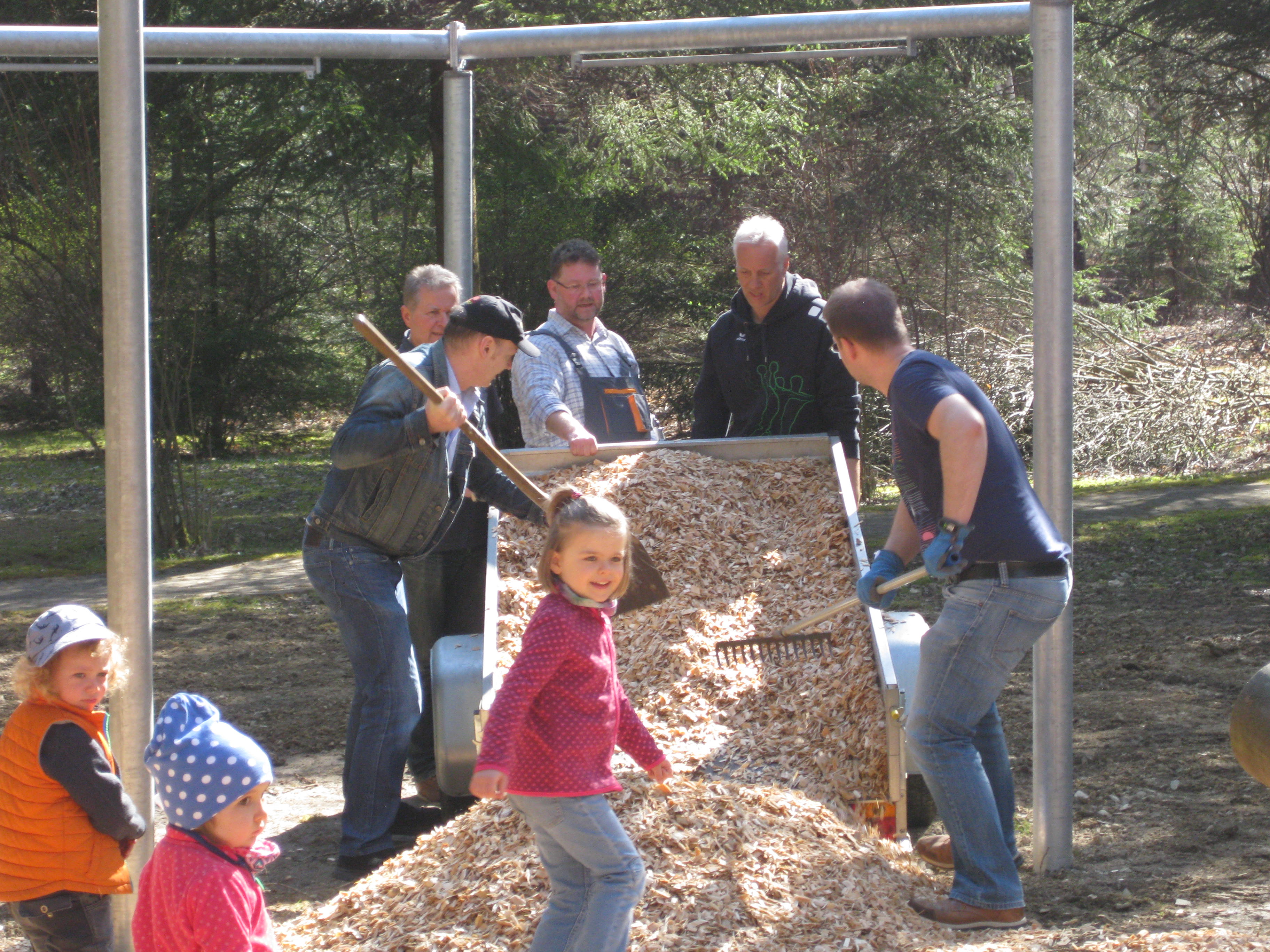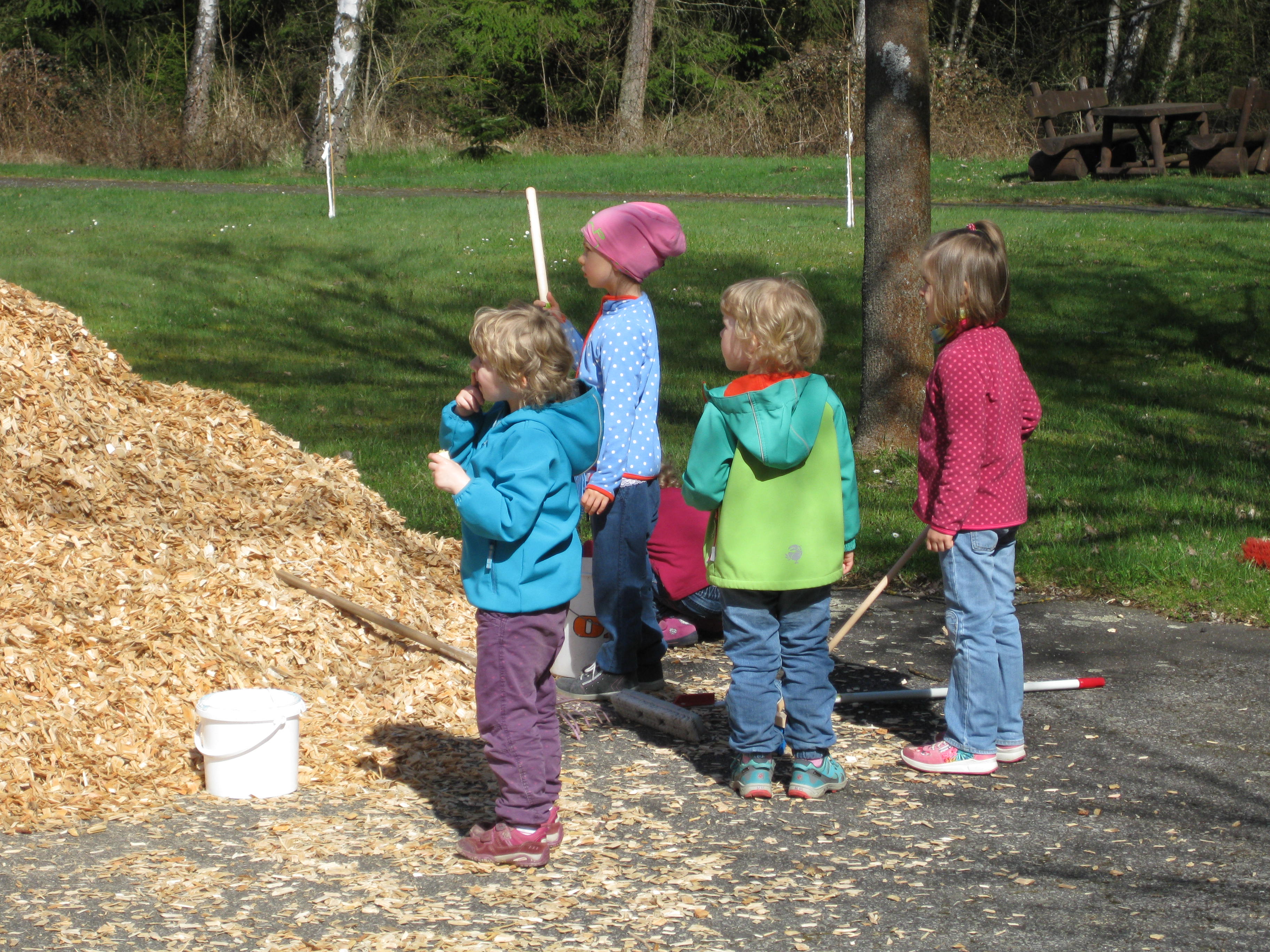 An diesem Tag wurde das Gelände auf die bevorstehende Saison vorbereitet: zu groß gewordene Hecken wurden zurückgeschnitten, die Terrassen wurden gereinigt und ein "großer Berg Holz-Schnitzel" wurde als Fallschutz rund um bzw. unter den Spielgeräten verteilt.