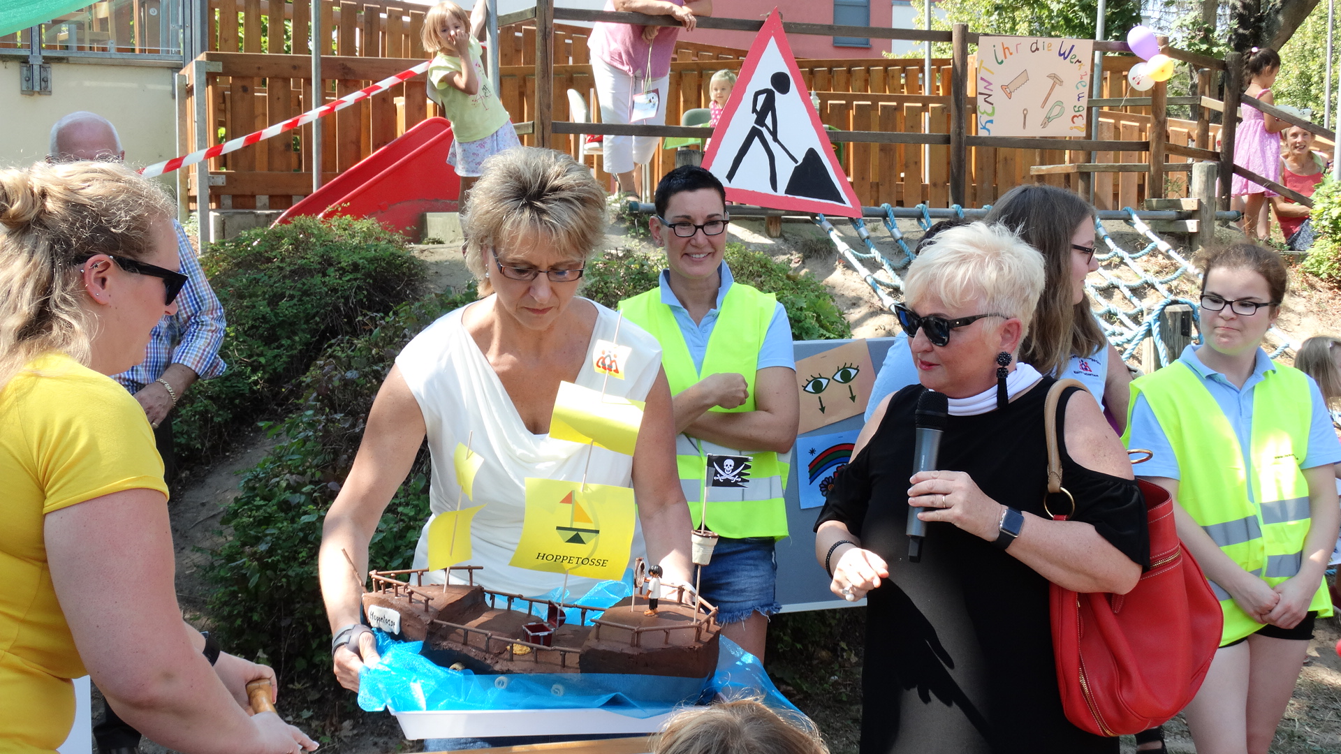Im Rahmen des diesjährigen Sommerfestes am 18. August wurde unsere integrative Kindertagesstätte auf den Namen "Hoppetosse" getauft. Pate für diesen Namen stand das Schiff von Astrid Lindgrens Pippi Langstrumpf.