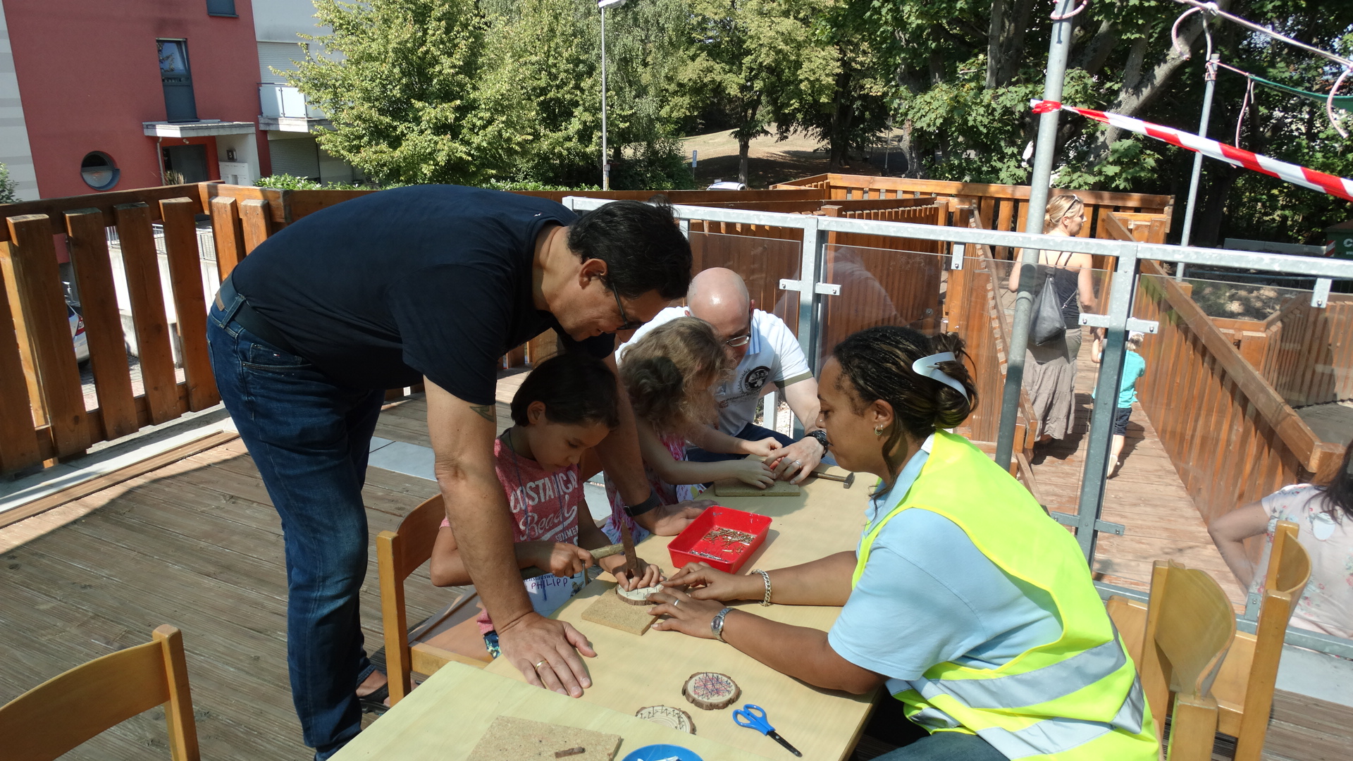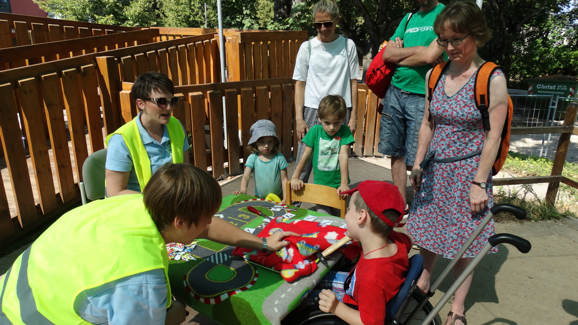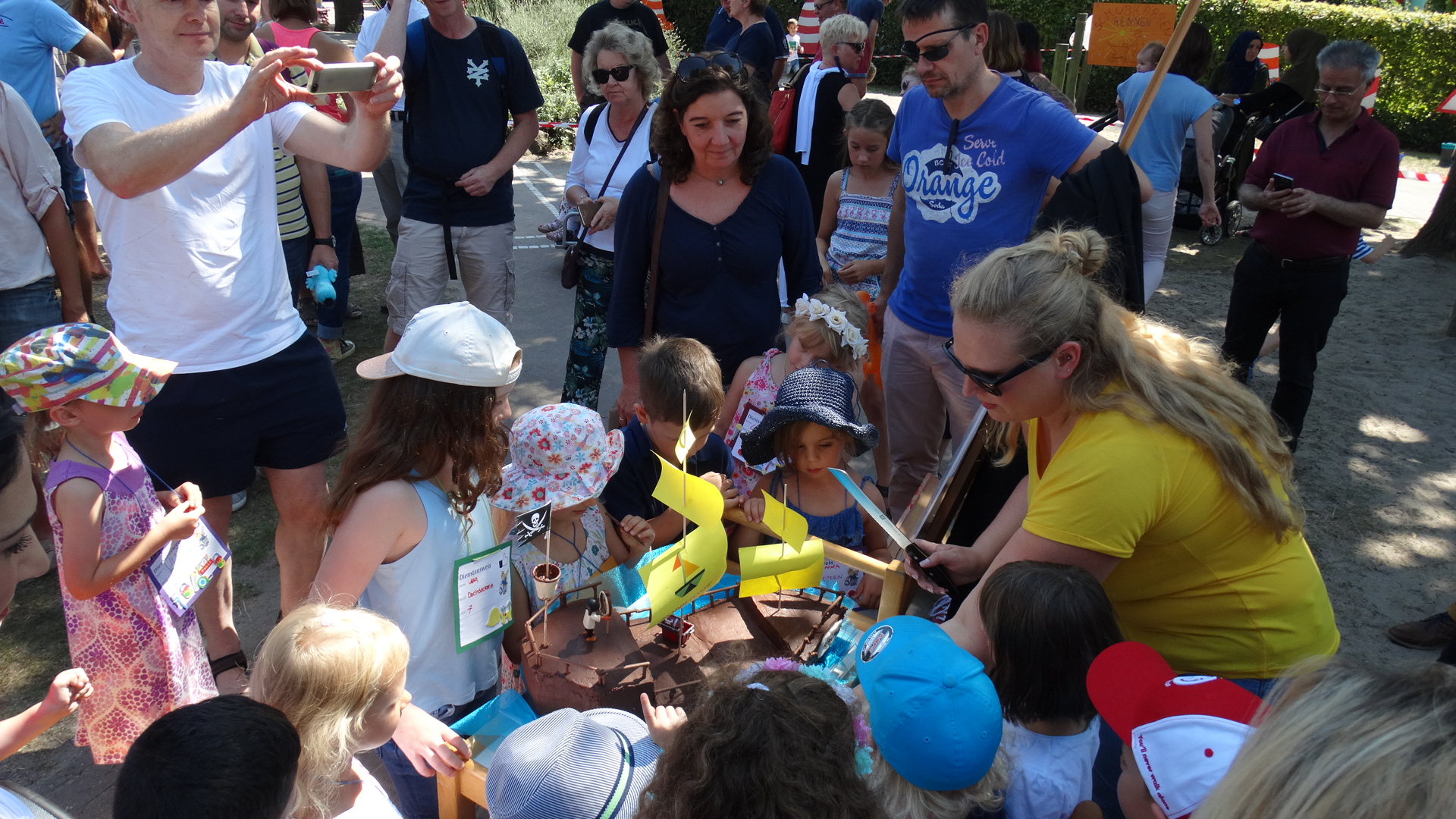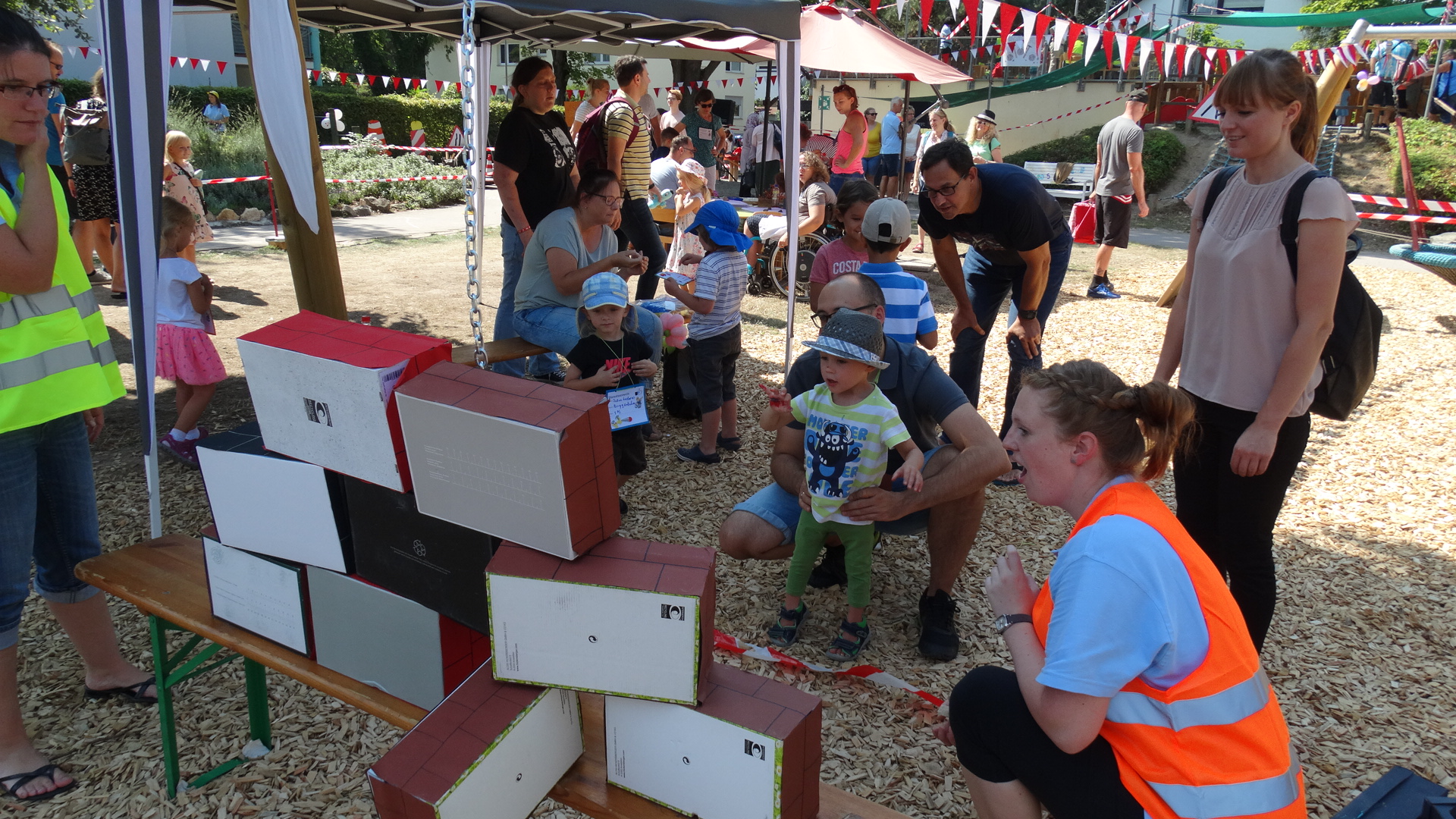 Und natürlich gab es auch in diesem Jahr viele Spielstationen für die Besucher unseres Sommerfestes, das unter dem Motto "Auf der Baustelle" stand: so gab es u.a. eine "Abriss-Birne" und ein Schubkarren-Rennen. Außerdem konnten die Kinder ihr Geschick im Umgang mit Hammer und Nägeln ebenso ausprobieren wie im Ertasten von Werkzeugen.