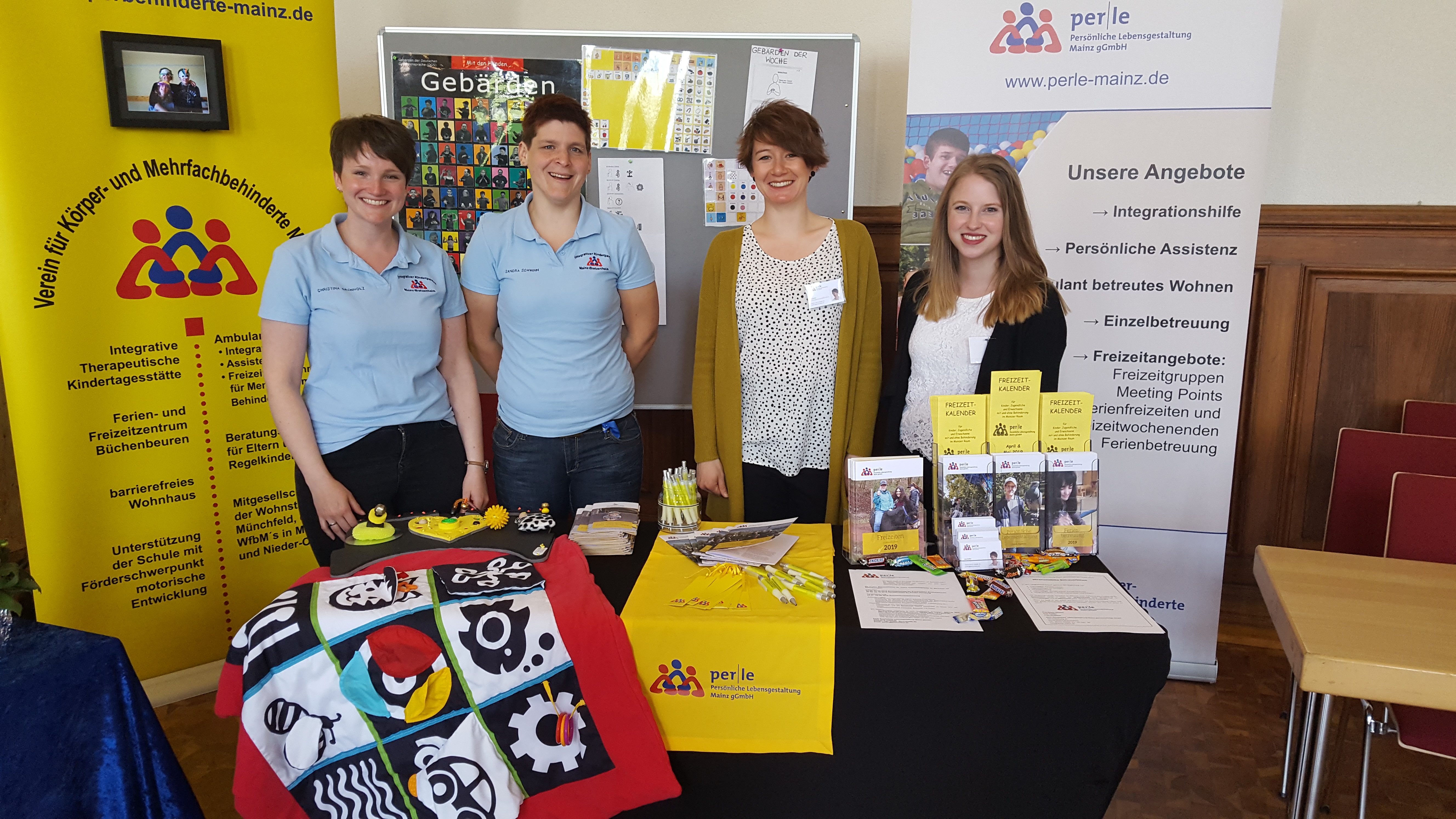 Bei der diesjährigen Berufsinformationsmesse "Pädagoginnen im Beruf" in der Johannes Gutenberg Universität in Mainz gestalteten Mitarbeiterinnen der HOPPETOSSE Integrative Kita und Krippe gemeinsam mit Mitarbeiterinnen der perle Persönliche Lebensgestaltung Mainz gGmbH einen Informationsstand, um weitere StudentInnen der Erziehungswissenschaft für Praktikas und den ehrenamtlichen Einsatz zu begeistern.