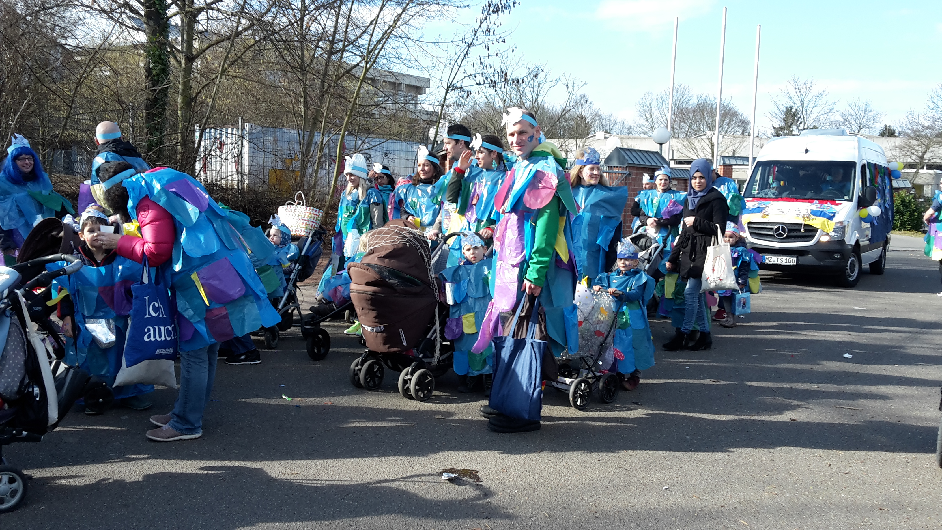Am 26.02.2017 nahm unser Integrativer Kindergarten wieder am alljährlichen Fastnachtsumzug in Bretzenheim teil. Insgesamt 60 Eltern, Kinder und Mitarbeiter zogen als Zugnummer 11a durch die Straßen von Bretzenheim. Der Verein bedankte sich auch in diesem Jahr für die Unterstützung bei den Bretzenheimern mit viel Wurfmaterial, was die Eltern und Kinder sehr gerne den zahlreichen Zuschauern zuwarfen.