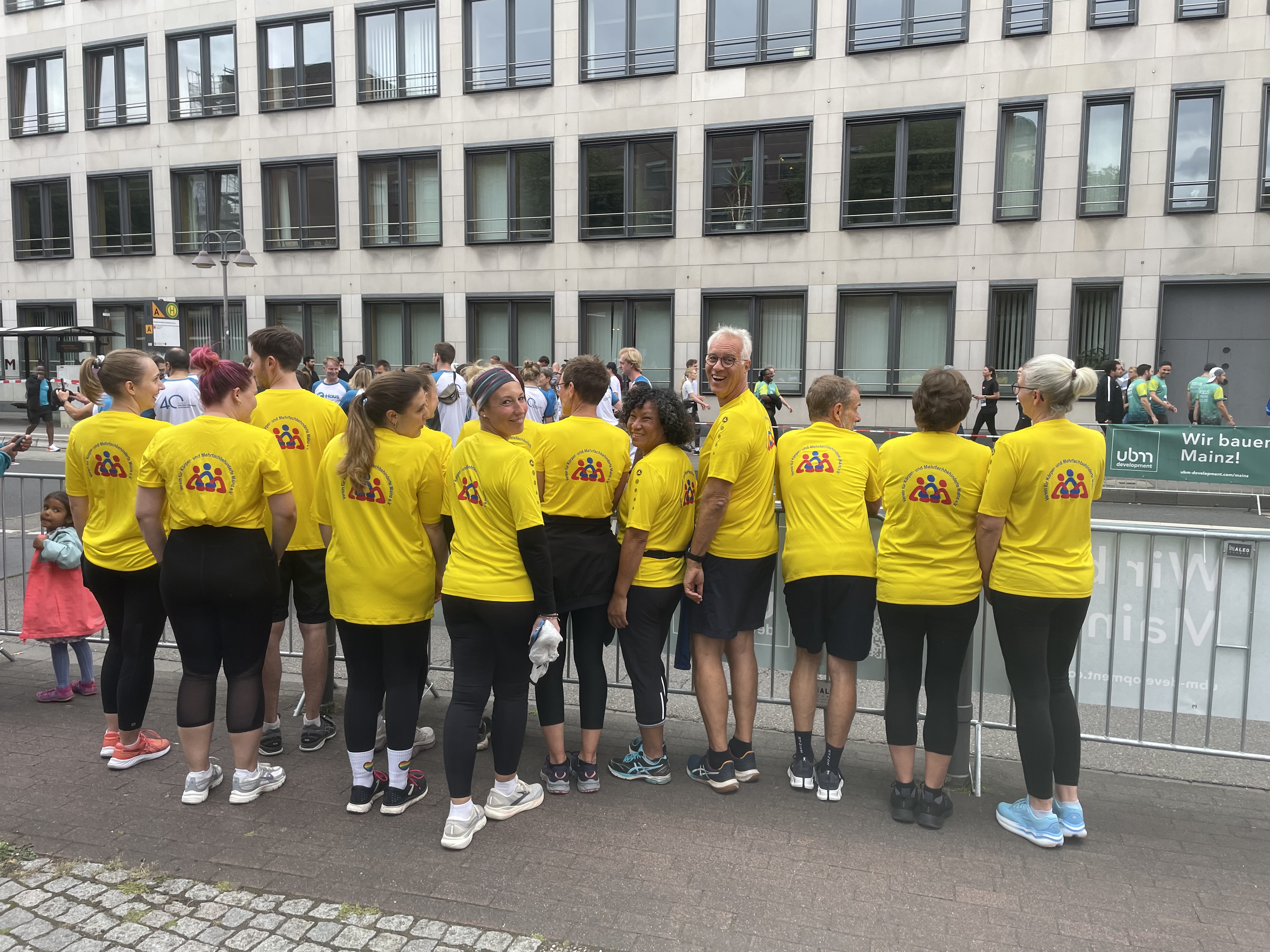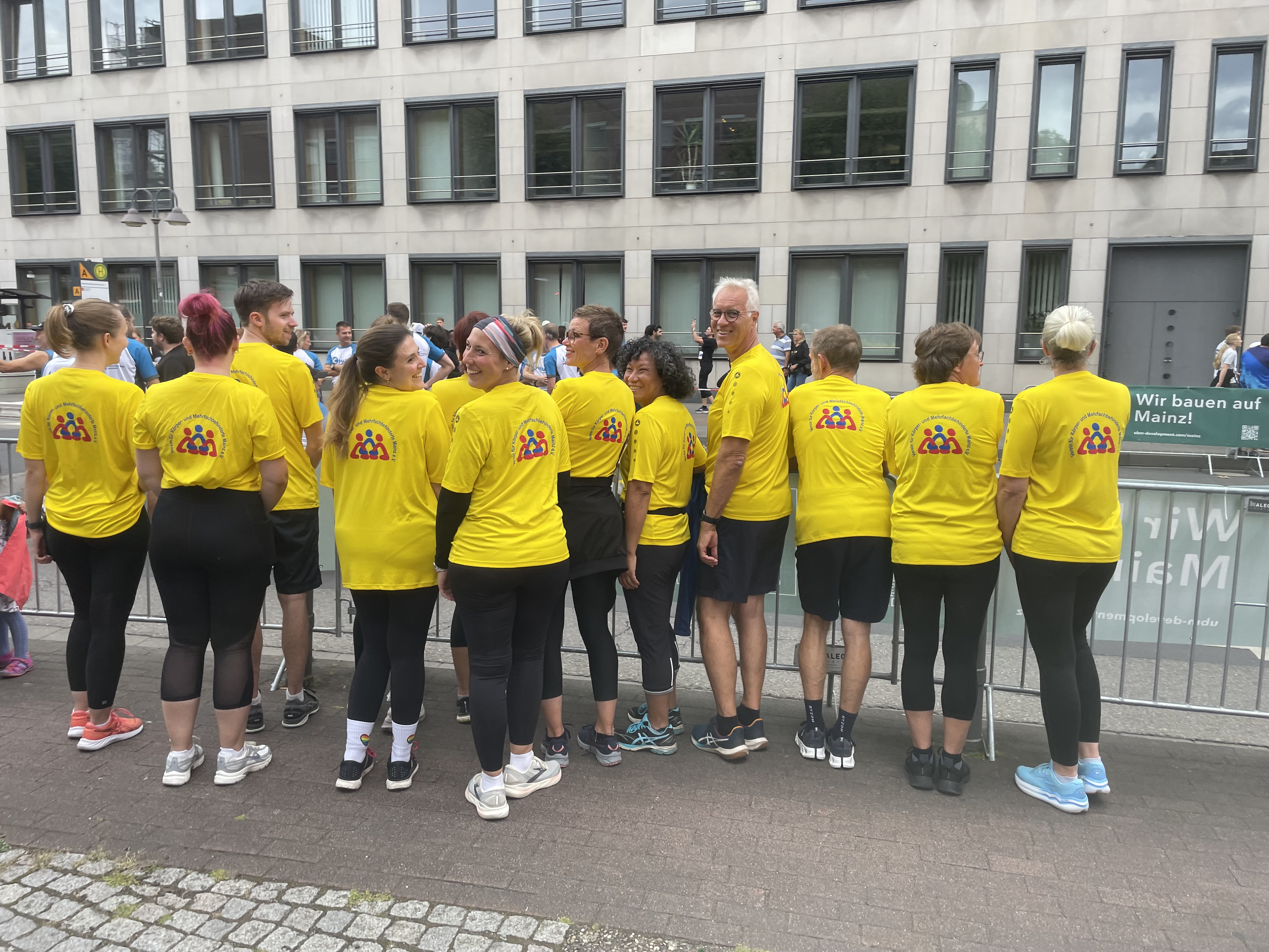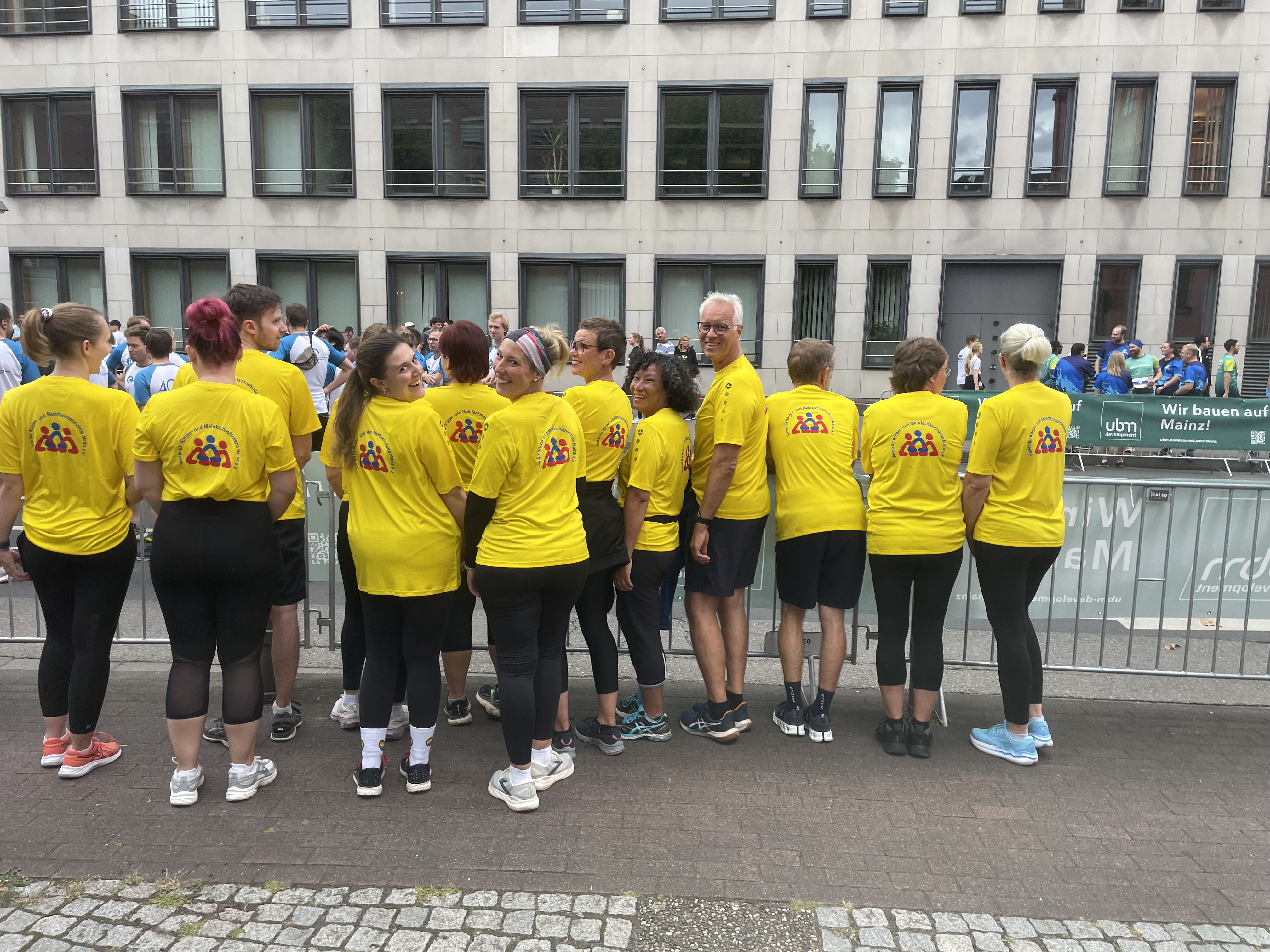 Erstmals nahm eine Gruppe von Mitarbeiter*innen des Vereins und der HOPPETOSSE am Firmenlauf in Mainz teil. Mit unseren knallgelben T-Shirts - noch aus der Zeit des "Run for children" - waren wir gut erkennbar und hatten bei toller, ausgelassener Stimmung alle viel Spaß. Dabei kam es nicht auf Zeiten an, nur das "dabei sein" zählte. Nach dieser schönen Erfahrung überlegen wir nun, ob es im Jahr 2026 eine Fortsetzung gibt...