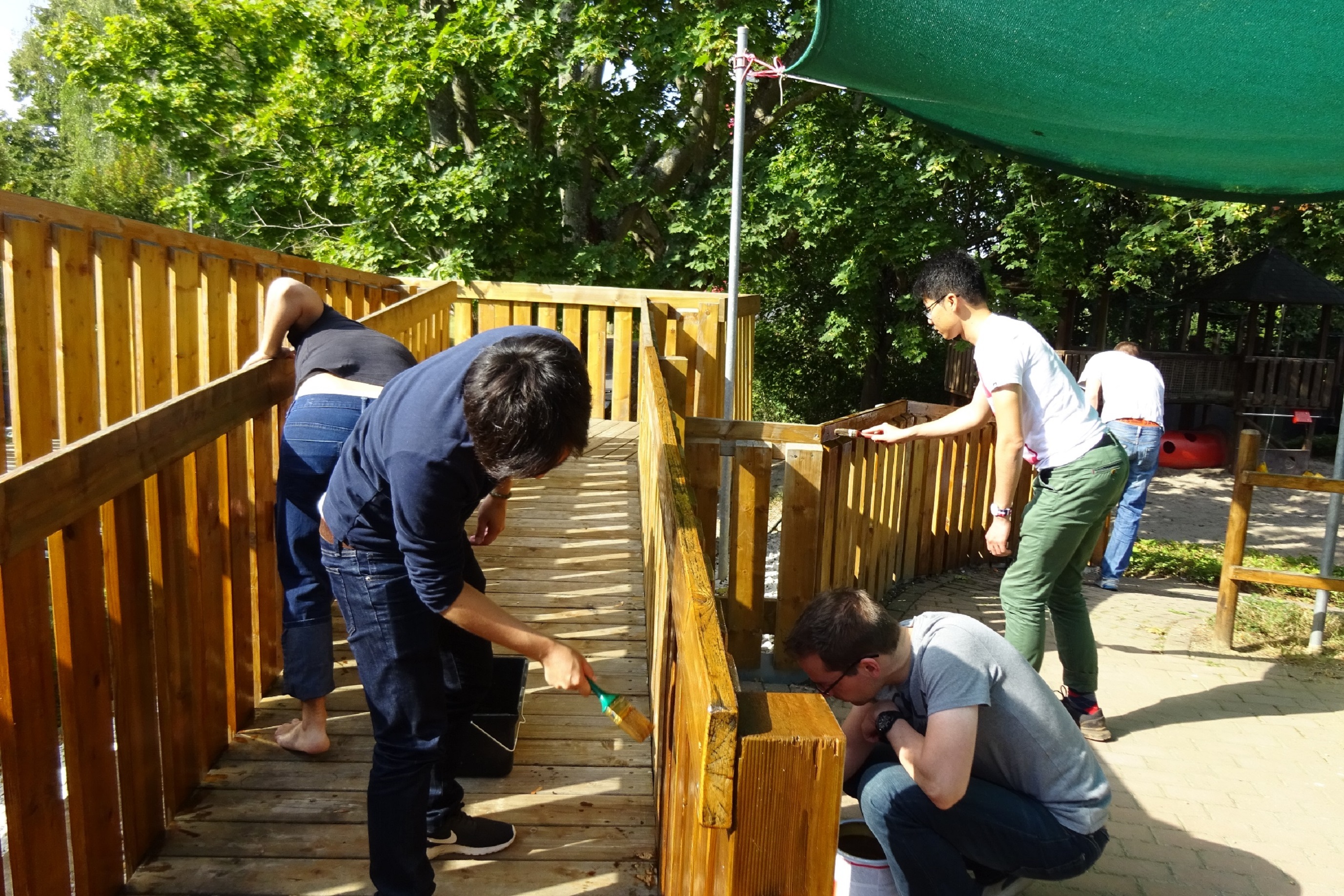 Am 21.09.2016 unterstützten uns Trainee der Fa. Schott mit ihrer Manpower: Ausbildende und Trainee aus den verschiedensten Ländern unterstützen uns durch Streicharbeiten auf unserem Außengelände.