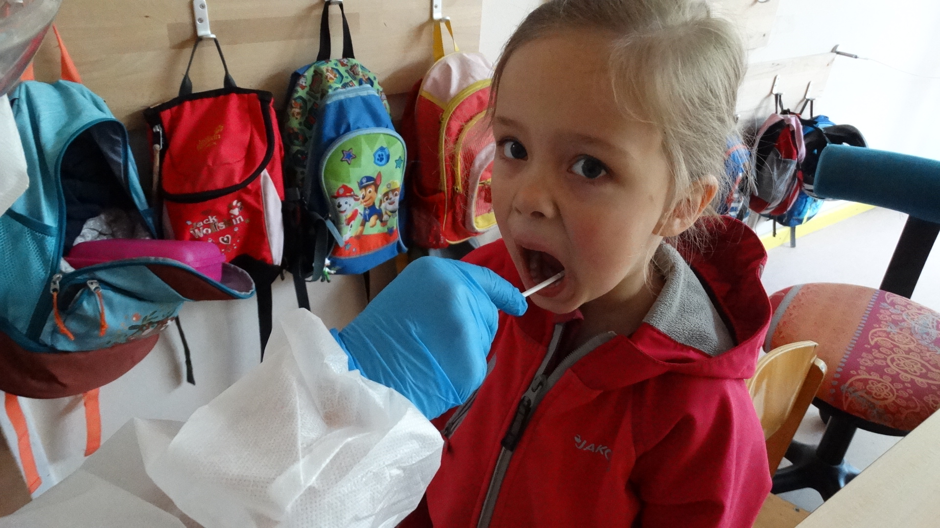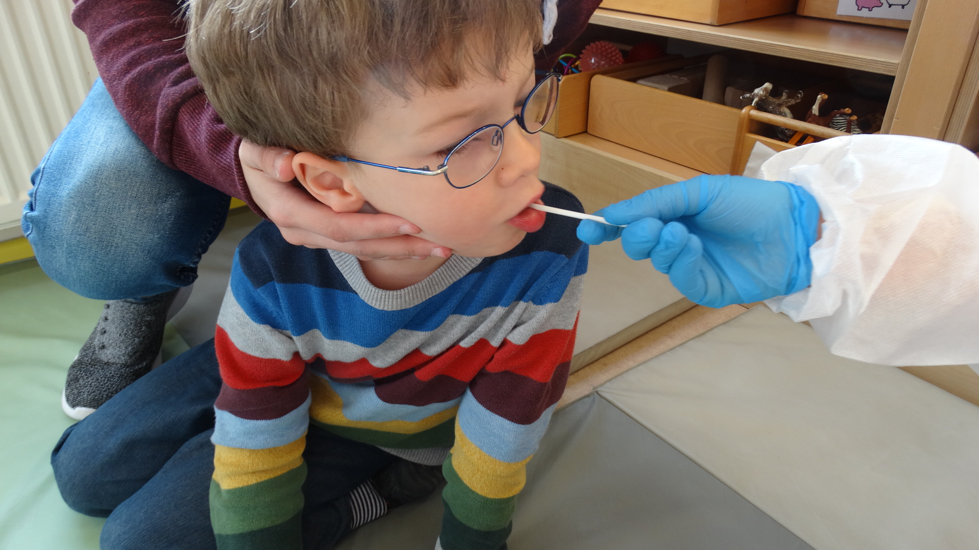 Das Fiebermessen vor dem Betreten der Kita gehört mittlerweile ebenso zum Alltag wie das Tragen der Masken. Nachdem die Mitarbeiter*innen seit vielen Wochen 2x wöchentlich in der Einrichtung getestet werden, gibt es auch seit einiger Zeit für die Kinder den Lolly-Test, der durch eine autorisierte Apotheke durchgeführt wird. Die Kinder machen vorbildlich mit – auch unsere Kinder mit Beeinträchtigung.