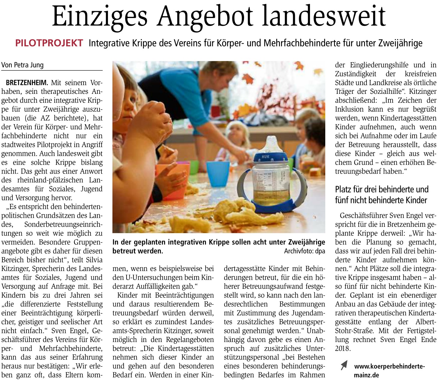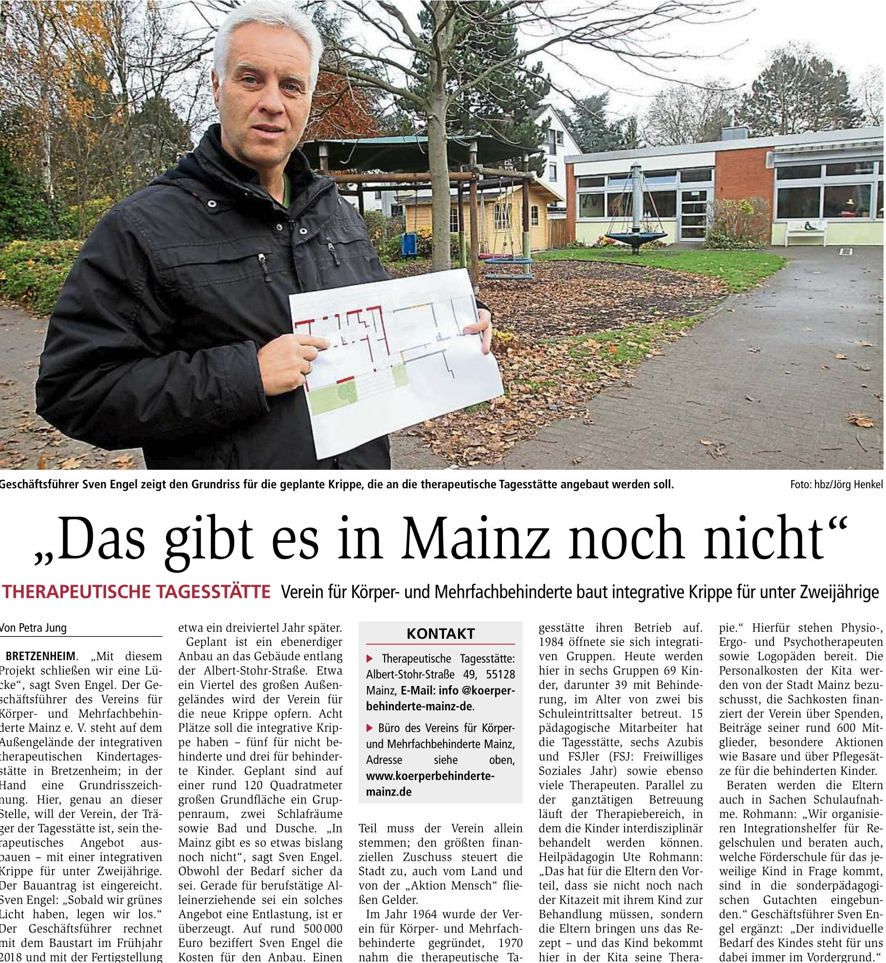 Mit dem Neubau und dem Aufbau einer integrativen Krippengruppe begibt sich der Verein auf Neuland: eine vergleichbare Einrichtung gibt es bisher in Mainz und - wie Recherchen der Mainzer Allgemeinen Zeitung ergeben haben - dem Land Rheinland-Pfalz nicht.