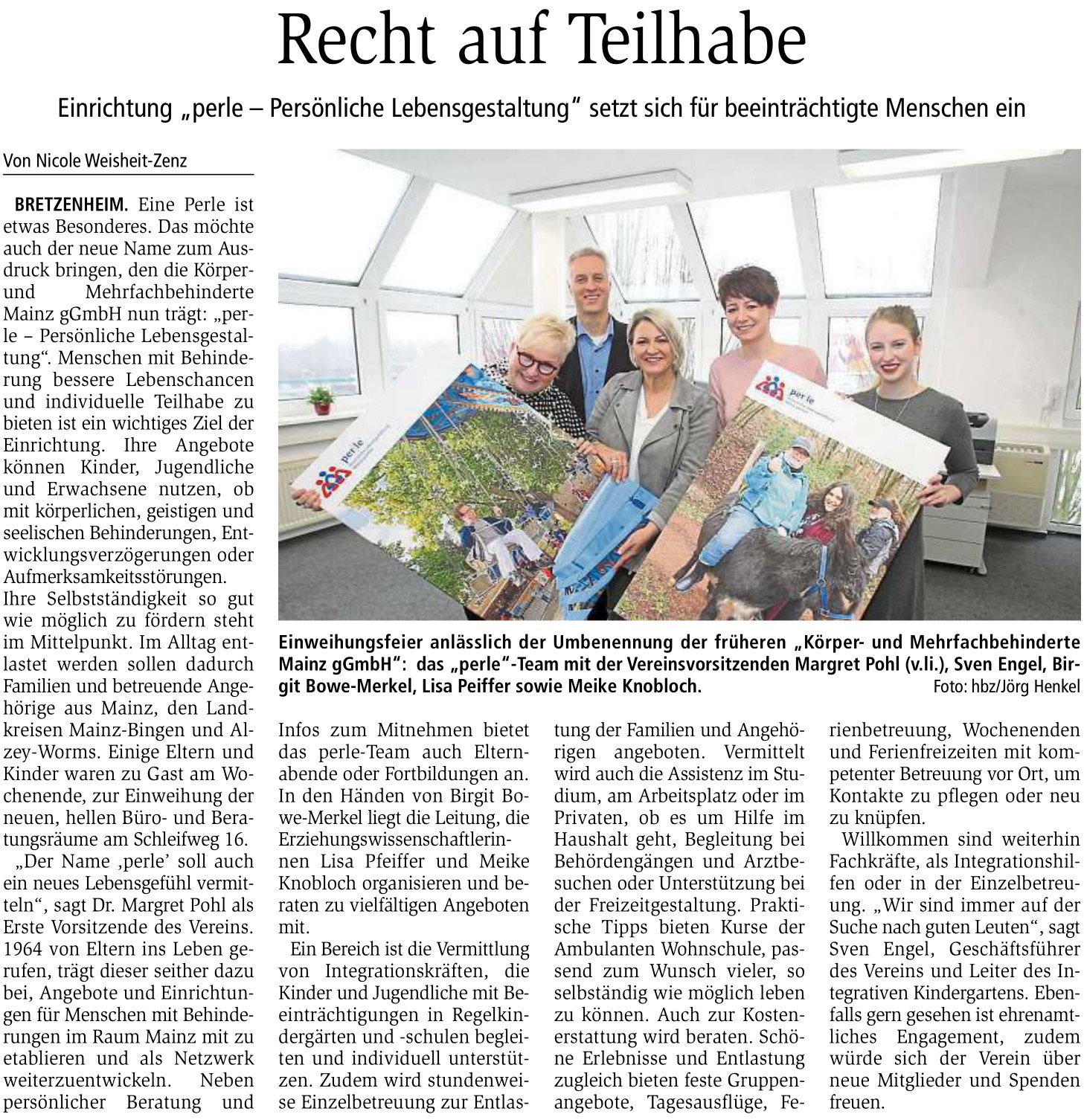 Mit Eintragung ins Handelsregister wurde der neue Name "perle Persönliche Lebensgestaltung Mainz gGmbH" offiziell. Lange haben wir gesucht, um einen schöneren Namen zu finden, der gleichzeitig wiedergibt, wofür wir einstehen.