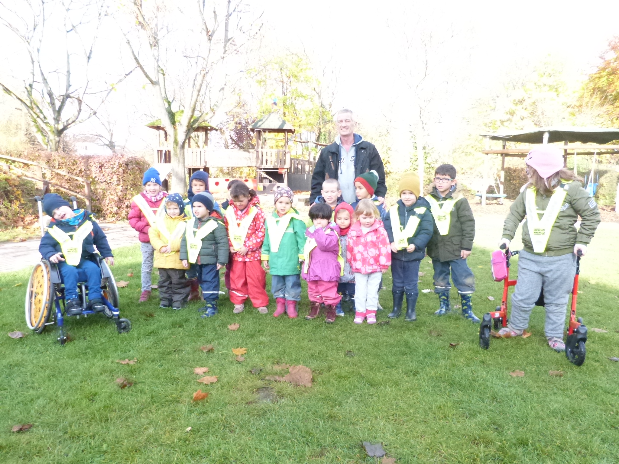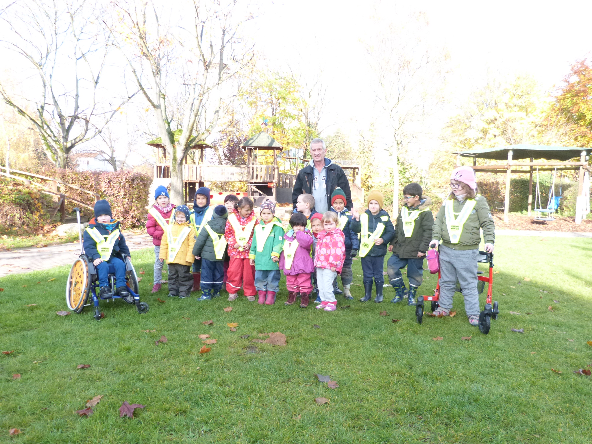 Gerade bei Ausflügen im Herbst und Winter ist es besonders wichtig, dass die Kinder unseres Integrativen Kindergartens bei Ausflügen im Straßenverkehr gut gesehen werden.