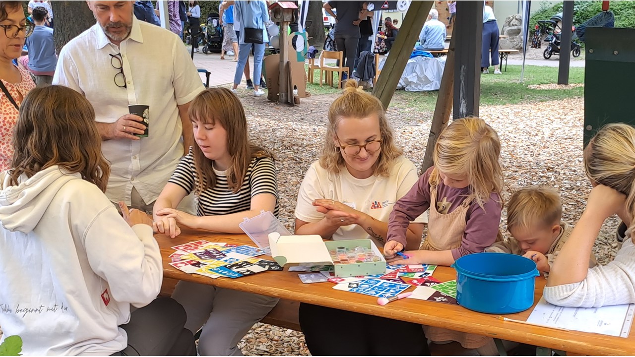 Ein besonderes Highlight war auch in diesem Jahr wieder das sehr gut besuchte Sommerfest der HOPPETOSSE. Unter dem Motto „Unsere bunte Welt“, reisten die Besucher durch viele bunte Spiel- und Bastelangebote. Bereits am Eingang bastelte sich jedes Kind einen Reisepass, mit dem es dann durchs Sommerfest reiste. Auch die perle war wieder mit einen Stand vertreten.