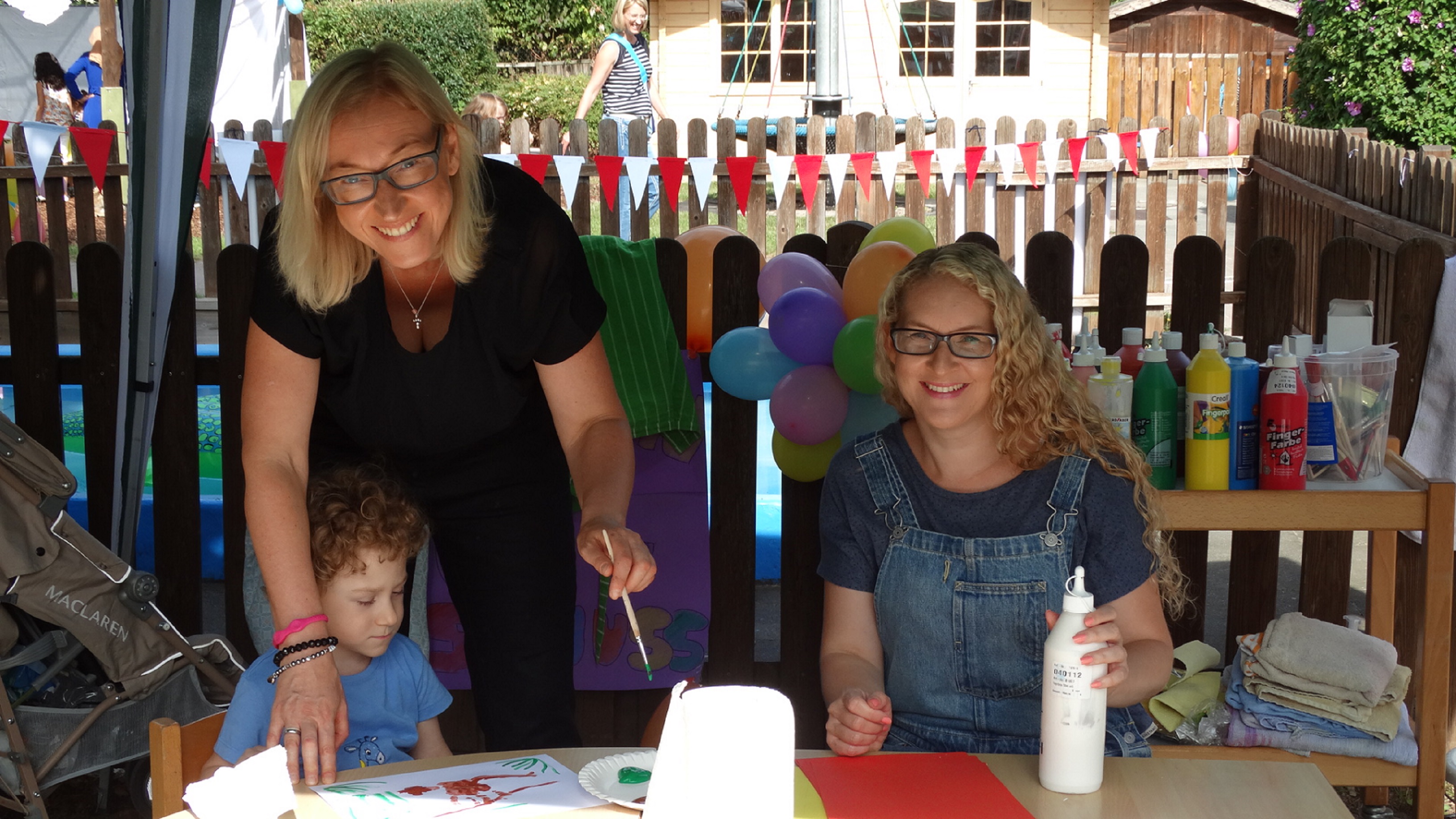 Auch die Kreisbeigeordnete Frau Hartmann-Graham und die Ortsvorsteherin Frau Siebner besuchten unser Sommerfest und hatten viel Spaß mit den Kindern.