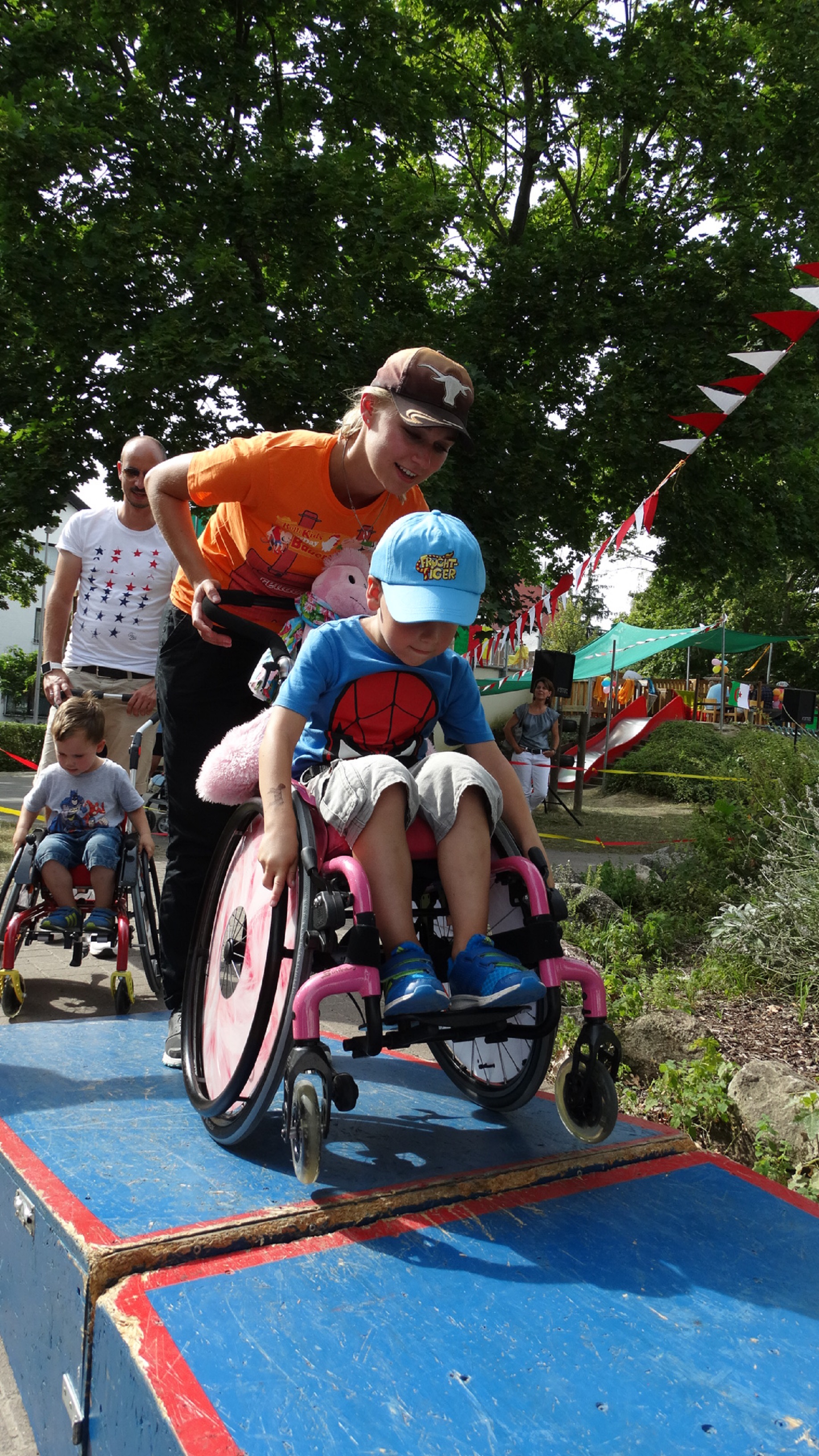 140 Kinder reisten mit ihrem "Reisepass" von Station zu Station, um dort kleine Aufgaben zu bewältigen: ein Rolli-Parcour, Sackhüpfen, Torwandschießen und vieles mehr wartete auf die Kinder.
