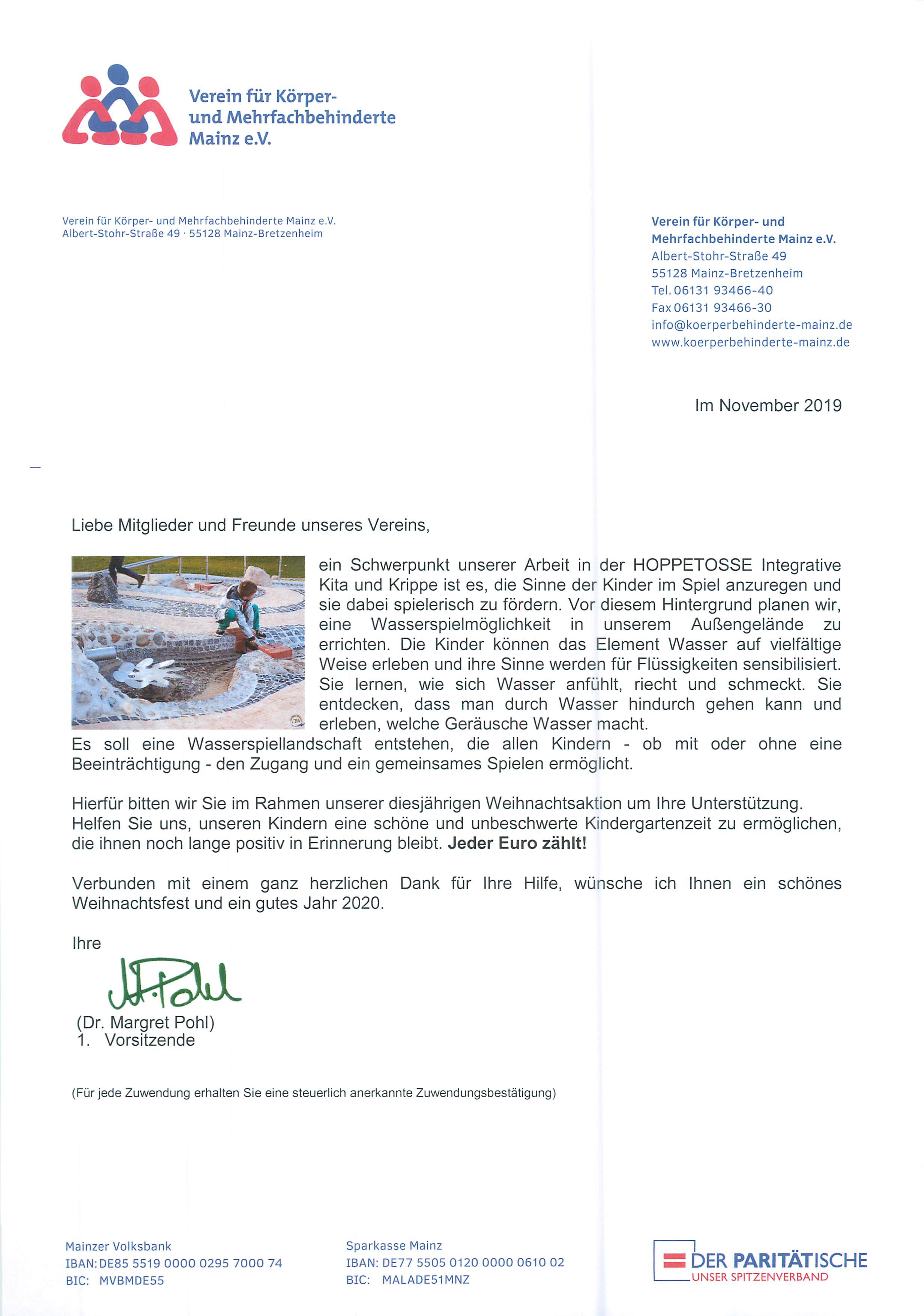 Spendenaufruf 2019 27. November 2019 In unserer diesjährigen Weihnachtsspendenaktion bitten wir Sie um Ihre Unterstützung für eine Wasserspiellandschaft für die Kinder unserer HOPPETOSSE. Bild in Großansicht anzeigen Galerie