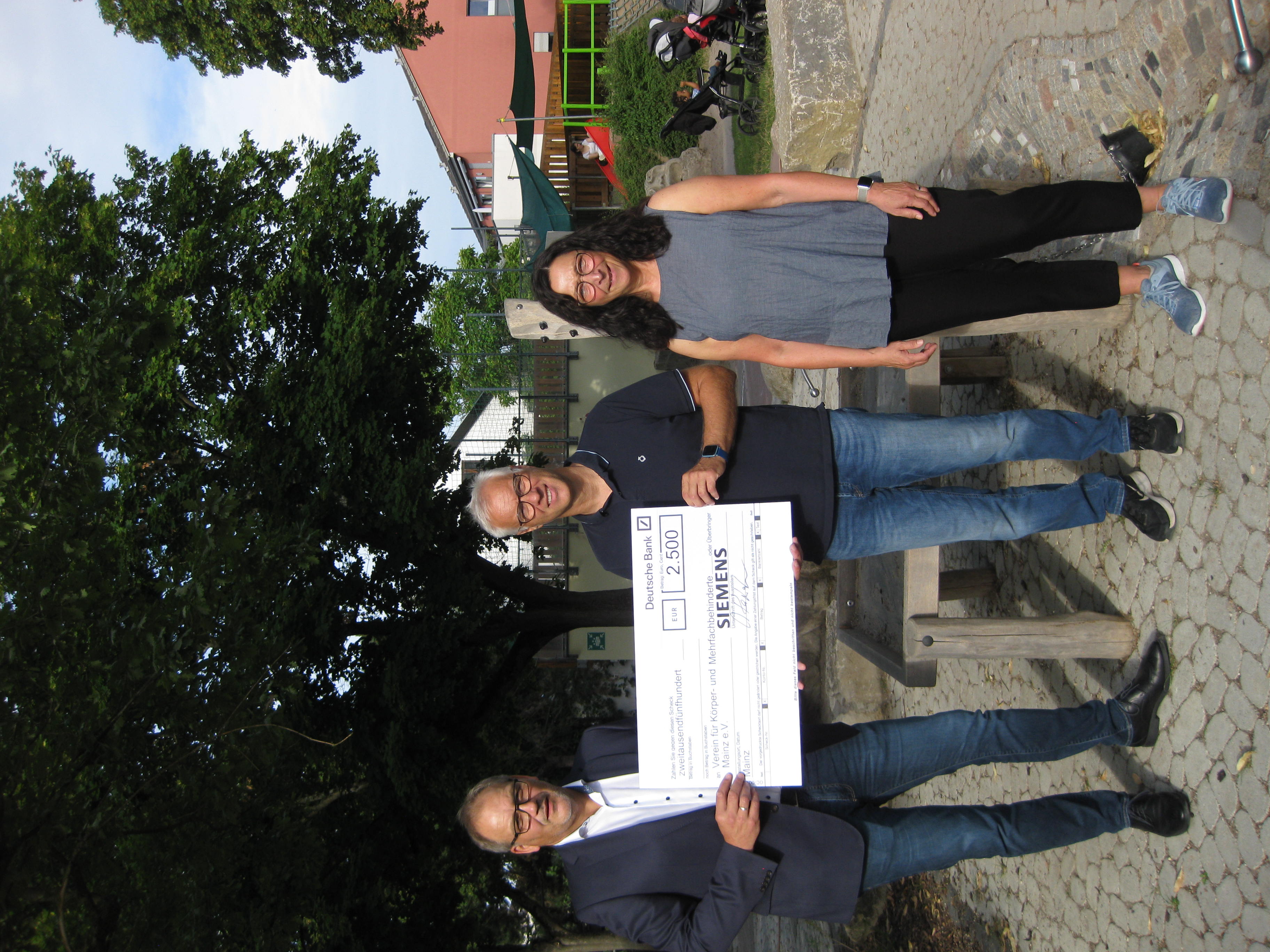 „Ein wesentlicher Bestandteil unserer Arbeit ist das Angebot therapeutischer Leistungen in unserer Integrativen Kita und Krippe HOPPETOSSE. Diese Spende leistet einen wesentlichen Beitrag, dieses Angebot weiterhin aufrecht zu halten und auszubauen“, sagte Engel. „Für die Spende von Siemens bedanke ich mich im Namen des Vereins für Körper- und Mehrfachbehinderte Mainz ganz herzlich, die wir in diesem Jahr für die Renovierung unserer Therapieräume einsetzen werden.“