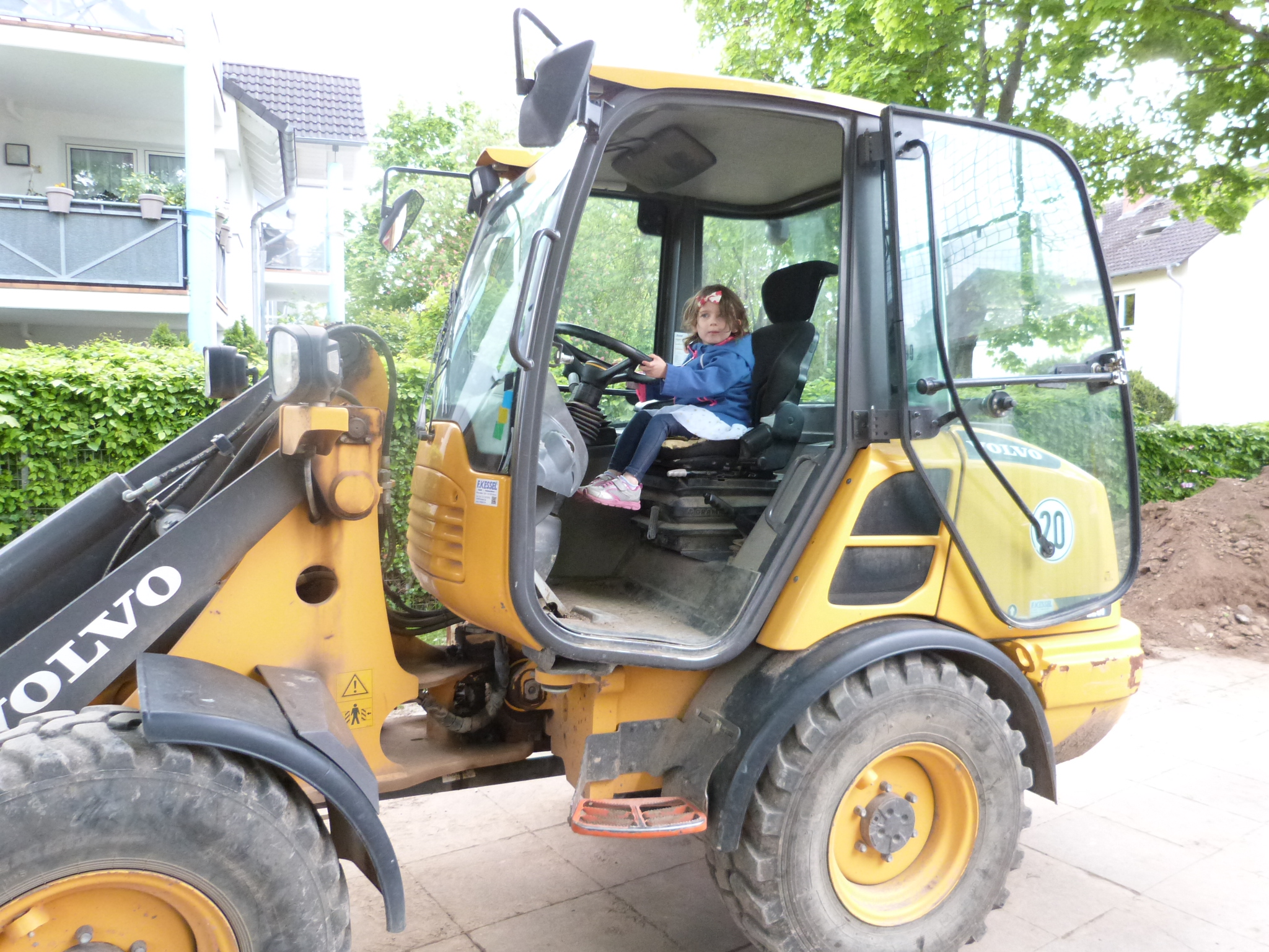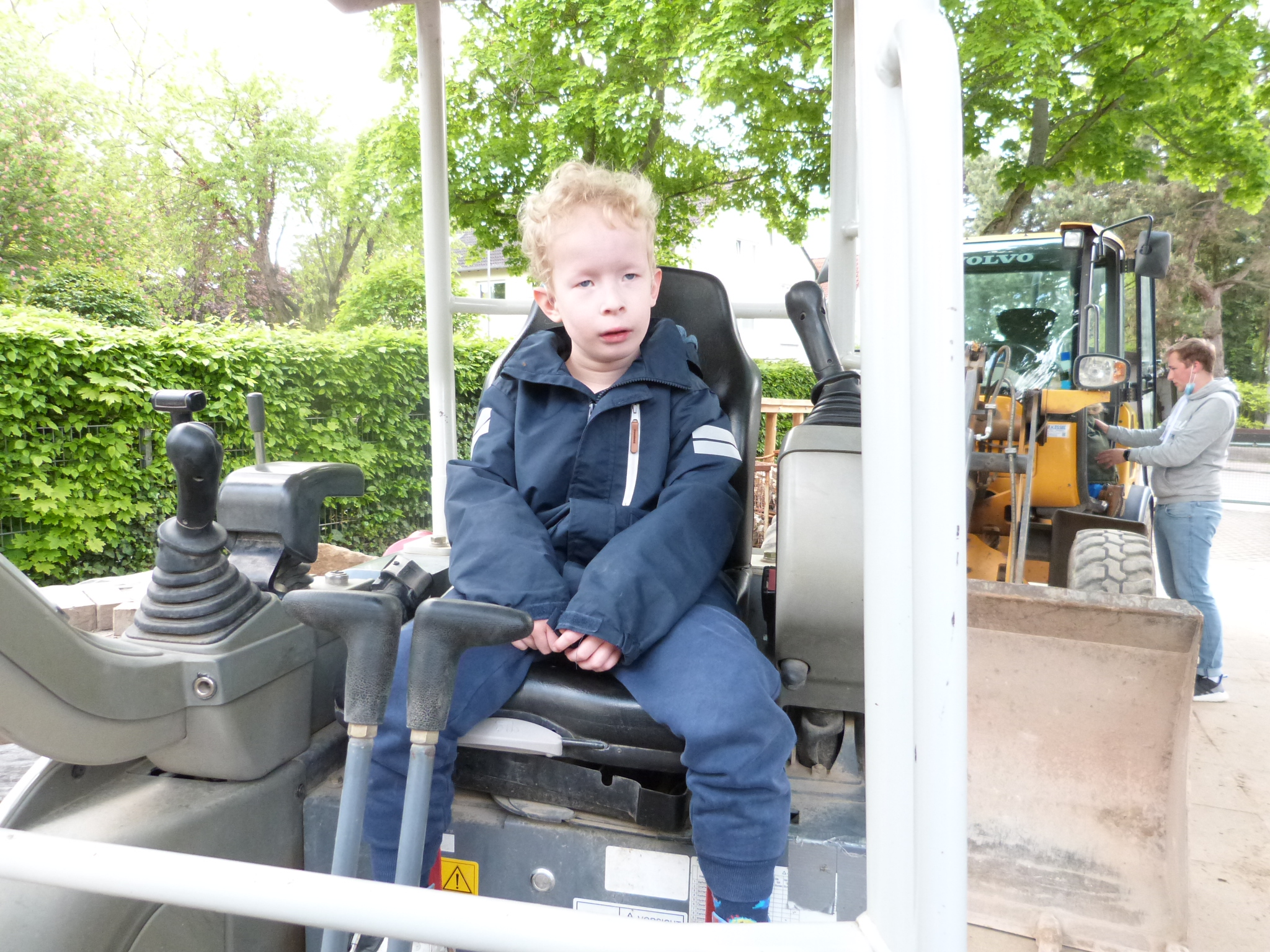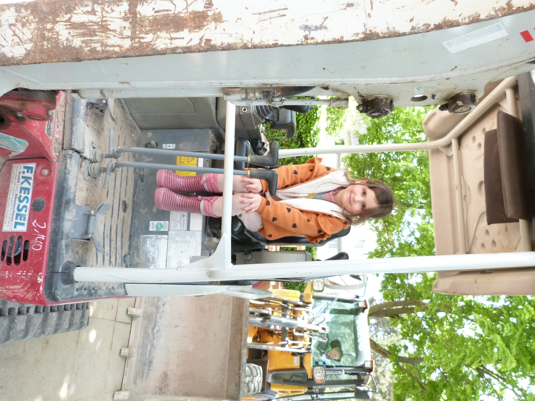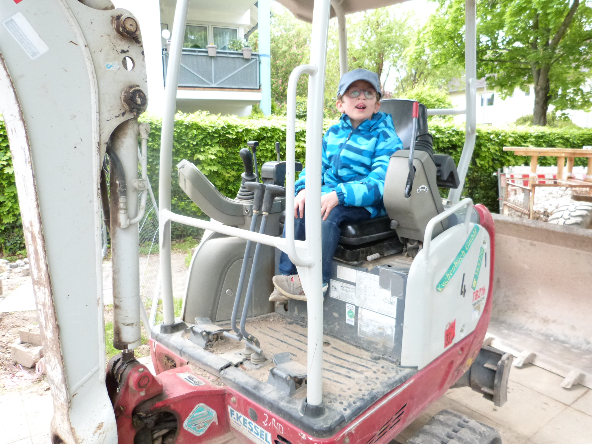 Für die Kinder ist das natürlich ein besonderes Highlight im Kita-Alltag. Aber sie dürfen nicht nur zuschauen, sondern konnten auch die Baufahrzeuge in Beschlag nehmen. Welches Kind (und so mancher Erwachsener) träumt nicht davon, einmal auf einem richtigen Bagger zu sitzen?